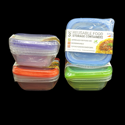 3 PK REUSABLE PLASTIC FOOD STORAGE CONTAINER. 32.12 OZ. 48 IN A CASE.MINIMUM ORDER 48 PACKS.