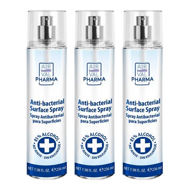 AIR VAL Pharma Antibacterial Surface Spray 85% Alcohol. 236 ml(7.98fl.oz) 24 in a Case. Minimum order 24 pieces.